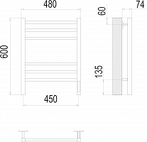 Сицилия П6 450х600 электро КС ЧЕРНЫЙ МУАР ( new встроен диммер) Полотенцесушитель TERMINUS